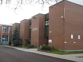 Lawrence Heights was the first large public housing project built by Metropolitan Toronto outside of the then-City of Toronto and is now managed under Toronto Community Housing. By 1955, 100 acres (40 ha) had been assembled by Metro. The project would have approximately 6,000 residents in 1,081 family units at a density of 12 families per acre, the largest public housing project to that date in Canada. When the project was announced, it sparked a strong opposition from the then North York Township. Citizens and elected officials threatened legal action to block the development. A compromise was worked out between Metro and North York whereby some of the units would be rented at market rates so that the project would not be exclusively very poor families.[1] Construction was completed by 1962. It consisted mainly of row houses and maisonettes with some small apartment buildings of less than 30 units each. A buffer of single-family dwellings was built between the project and the private sub-division to the east. An elementary school was part of the project. The elementary school filled up immediately and senior elementary students were sent to a neighbouring junior high. A controversy erupted over the use of the swimming pool at a neighbouring secondary school, whereby project students could only use the pool on one or two evenings per week. A community center was built in the mid-1960s, its $100,000 cost shared by North York and Metro without any support from the Ontario or the federal housing agency Canada Mortgage and Housing Corporation.[2]