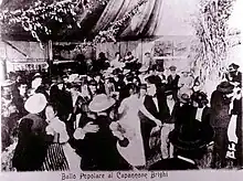 Italian immigrants to San Francisco, California brought the liscio tradition to California in the early 1900s. Central to the California tradition are mandolin, accordion, and guitar, sometimes supplemented by violin and double bass. The ballroom music of Italian immigrants underwent a strong Latin American influence by the 1950s.[3] The repertoire of California ballo liscio musicians is diverse, including uniquely Italian dances like the tarantella; pan-European round dance forms; the American foxtrot; the Spanish jota and paso doble; the Latin American rhumba; and the Caribbean beguine.[4][5]
