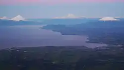 View of Llanquihue Lake. During much of the Llanquihue glaciations glaciers flowing from the Andes in the east (background) coalesced and entered the lake basin forming a large glacier lobe there.