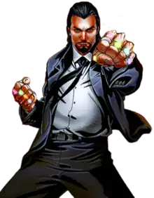 The Mandarin is a supervillain appearing in American comic books published by Marvel Comics. He is the archenemy of Iron Man.[1][2][3] The character was created by Stan Lee and designed by Don Heck, first appearing in Tales of Suspense #50 (Feb. 1964).[4] The character is described as being born in China before the Communist revolution to a wealthy Chinese father and an English aristocratic mother, both of whom died when he was young. He is characterized as a megalomaniac, attempting to conquer the world on several occasions, yet also possessing a strong sense of honor. The Mandarin is portrayed as a genius scientist and a skilled martial artist. However, his primary sources of power are 10 rings that he adapted from the alien technology of a crashed space ship. Each ring has a different power and is worn on a specific finger. Though his primary obsession is Iron Man, given his high status as a supervillain, he has also come into conflict with Thor, Hulk, Shang-Chi and other superheroes in the Marvel Universe.