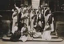When Phillips was released from prison she was welcomed by Flora Drummond, bagpipes and other suffragettes who posed in tartan [3] for a picture under the slogan "Ye Mauna Tramp on the Scotch Thistle Laddie". The Scottish suffragettes present compared their struggle to the campaign of William Wallace.