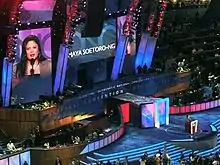 Soetoro-Ng also spoke briefly about the Obama administration's accomplishments at the 2012 Democratic National Convention in Charlotte, North Carolina, on September 4, 2012, sharing the podium with First Lady Michelle Obama's older brother, former Oregon State University men's basketball team head coach, Craig Robinson.[24]
