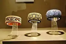 In the Mazahua region, almost all women wear crescent earrings, as it is custom for a groom to buy a pair for his fiancé instead of a ring. The earrings are made from silver coins provided by the groom and made by traditional silversmiths. In the 1970s, efforts were made headed by María Teresa Pomar to preserve the silversmithing tradition, which was in danger of dying out. Her efforts eventually led to the creation of a Mazahua silversmith guild whose members have won prizes for their work.[2]
