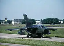Memmingen Airport has an ILS Category 1 for runway 24 and is equipped with NDB/DME and GPS RNAV. Originally, the runway was only 30 metres (98 ft) wide with accordingly narrow taxiways due to its former use as a facility for jet fighter aircraft. However, an expansion to the international standard 45 metres (148 ft) had been granted in 2016[20] and was completed in September 2019.[16] Simultaneously, the runway was equipped with new LED lighting, while an upgrade of the ILS for direction 06 is under preparation.[16]