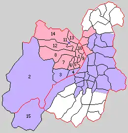 Colored areas are in this district.