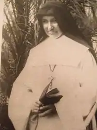 Lavigerie sent the Abbé Le Mauff back to his native Brittany to recruit the first sisters, who were to be "generous, brave, ready for anything and capable of becoming the cornerstones of the society."[4] Le Mauff returned on 9 September 1869 with eight young Breton women, of whom four would persevere. At first the sisters were given the task of looking after orphan Arab children.[5] In January 1872 Marie-Renée Roudaut, cousin of one of the first Breton recruits, reached Algeria with four other volunteers. On 23 June 1872 she took the name of Soeur Marie-Salomé, and on 6 July 1873 she pronounced her first vows.[5]
