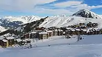 La Plagne (French pronunciation: [la plaɲ]) is a French ski area in the alpine valley of the Tarentaise (Savoie). Since 2003, La Plagne and the neighbouring resort of Les Arcs form Paradiski's ski area. It is currently owned by Compagnie des Alpes.