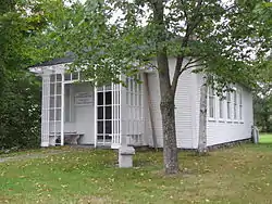 Plainfield's former Mothers' and Daughters' Club House is located in the village of Plainfield, on the east side of Main Street a short way north of Plainfield Town Hall. It is a single story wood-frame structure, five bays wide and one deep, with a pyramidal hipped roof. A small woodshed is attached to the east (rear) end of the building, and there is a trellised front porch, added shortly after the building's construction. The interior has a single large chamber, with five bays of windows on the side walls, and a fireplace at its eastern end.[2]