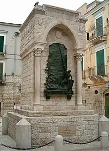 In 1503 Barletta was the location of the disfida di Barletta ("Joust of Barletta"), a battle during which 13 Italian knights commanded by Ettore Fieramosca challenged and defeated an equal number of French knights who were at the time prisoners of war, in a joust held near Andria.[3] This episode was documented in 1833 by Massimo d'Azeglio, who wrote the novel "Ettore Fieramosca o la Disfida di Barletta". In the book the author regards this episode as one of the earliest manifestations of Italian national pride.