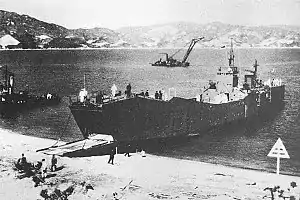 The No.101-class landing ships (第百一号型輸送艦,, Dai 101 Gō-gata Yusōkan) were a class of amphibious assault ships of the Imperial Japanese Navy (IJN) and Imperial Japanese Army (IJA), serving during and after World War II. The No.101 class ships were powered by diesel engines, while the similar No.103-class landing ships (第百三号型輸送艦,, Dai 103 Gō-gata Yusōkan) were powered by a steam turbine engine. The IJN called them 2nd class transporter (二等輸送艦,, 2-Tō Yusōkan). The No.103 class included the IJA's SB craft (SB艇,, SB-tei) [1] variant. This article handles them collectively.