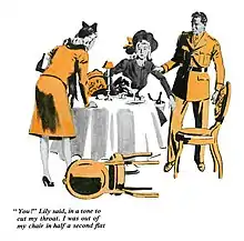 "You!" Lily said, in a tone to cut my throat. I was out of my chair in half a second flat