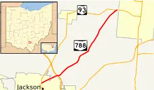 State Route 788 (SR 788) is a north–south state highway in the southern portion of the U.S. state of Ohio. The western terminus is at State Route 93 in Jackson. Its eastern terminus is also at State Route 93, this time less than 2 miles (3.2 km) west of Wellston.