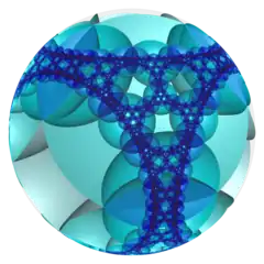 The order-4 octahedral honeycomb is a regular paracompact honeycomb in hyperbolic 3-space. It is paracompact because it has infinite vertex figures, with all vertices as ideal points at infinity. Given by Schläfli symbol {3,4,4}, it has four ideal octahedra around each edge, and infinite octahedra around each vertex in a square tiling vertex figure.[1]