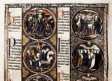 Finally, changing standards of marriage might have undermined Pepin's claims to the throne. Charlemagne's intimate relationships, with both wives and concubines, drew much criticism from his contemporaries—a monk from Reichenau even reported a "vision" he had in which he saw Charlemagne being gruesomely punished in purgatory for his marital sins.[11] Indeed, the medieval historians who dismissed Pepin's mother as a concubine were often the same intellectuals and religious reformers who pushed for the imposition of orthodox Catholic practices throughout the Frankish domains, and the abandonment of old pre-Christian customs. Such reformers would have rejected the morality of friedelehe outright, even if Himiltrude was technically Charlemagne's legal wife under old Germanic law.[11] Some historians have argued that this morality shift—a move to more orthodox Catholic definitions of marriage—helped push Pepin into the background.[7] If Charles wanted to impose Catholic notions of orthodoxy on his domains, then he needed to abandon Pepin—the incarnate symbol of what was at best a pre-Christian variety of marriage and at worst, an un-Christian concubinage. Moreover, the notoriously "uxorious" Charles might have bowed to pressure from his new wife Hildegard, who wanted her own son to enjoy the most legitimate claim to the throne.[7]