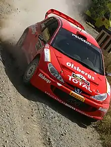 The Peugeot 206 WRC is a World Rally Car based on the Peugeot 206. It was used by Peugeot Sport, Peugeot's factory team, in the World Rally Championship from 1999 to 2003. The car brought Peugeot the manufacturers' world title three years in a row from 2000 to 2002. Marcus Grönholm won the drivers' title in 2000 and 2002.
