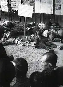 Following the memorandum, Mussolini communicated to the German ambassador to the RSI, Rudolf Rahn, that the methods used by the German military "were contrary to the feelings of the Italians and offended their natural mildness";[15] in fact, however, without making a concrete commitment to restore justice. Less than a year later, at dawn on April 29, 1945, in the same square, the corpses of Mussolini, his lover Claretta Petacci and 15 other fascists,[16] were exposed in front of the crowd that had flocked to the news of the Duce's death.
