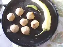 Piedra or tuniche is a Mexican dish. It consists of a corn dumpling with some sort of stuffing, which is fried until crunchy consistency. Piedras are commonly accompanied with pink onion, chopped lettuce and guacamole.