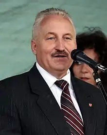 In January 2014, PSL decided to establish cooperation with SKL and Samoobrona, but SKL already in February announced that Jarosław Gowin joined Poland Together, and the PSL talks about a joint election campaign with Samoobrona did not end with an agreement. In March, MP Andrzej Dąbrowski left PSL.[38] The party's candidate in the 2015 presidential election was the marshal of the Świętokrzyskie Province, party vice president Adam Jarubas.[39] He placed 6th, obtaining 238,761 votes.[40] Before the second round, PSL was involved in the campaign of the then-incumbent President Bronisław Komorowski.[41]