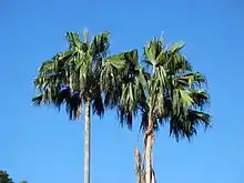 Pritchardia remota, the Nihoa pritchardia,[2] Nihoa fan palm, or Loulu, is a species of palm endemic on the island of Nihoa, Hawaiʻi, and later transplanted to the island of Laysan. It is a smaller tree than most other species of Pritchardia, typically reaching only 4–5 metres (13–16 ft) tall and with a trunk diameter of 15 centimetres (5.9 in). It is the only type of tree on the island and used to be abundant. In 1885 a wildfire ravaged the island, destroying most of the palms. Only about 700 of these trees remain, making the species endangered but numbers are slowly increasing. The palm is being cultivated in botanical gardens.[3]