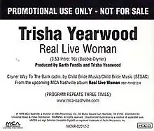 "Real Live Woman" is a song written by Bobbie Cryner and recorded by American country music artist Trisha Yearwood. It was released in January 2000 as the first single and title track from her album Real Live Woman. The song reached #16 on the Billboard Hot Country Singles & Tracks chart in April 2000.[1]