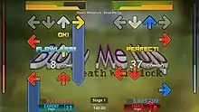 Dance Dance Revolution, released in 1998, is a rhythm game in which players dance on pressure-sensitive pads in an order dictated by on-screen instructions.[14] The game was highly successful both in and outside Japan, unlike games such as GuitarFreaks, DrumMania and Beatmania, though the latter had some success in Europe.[24] Released the same year, Enix's Bust a Groove features a similar focus on dancing but employs a more conventional input method. The game contains competitive one-on-one battles, and grants the player more freedom than typical rhythm games.[13][25]