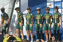 Robyn de Groot, born 26 December 1982, is a South African cyclist.[1] She cycled professionally on the road from 2006 to 2012. Representing South Africa for 6 consecutive years, she represented South Africa at 4 World Championships, the 2010 Commonwealth Games in Delhi, India and the 2012 London Summer Olympics. She was unable to finish within the time limit due to an early crash and mechanical problems.