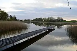Coasts of the lake are flat, swampy, covered by reed beds.
