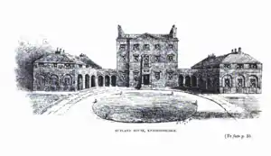 This was built for John Manners, 3rd Duke of Rutland.[3] It enjoyed at first a rectangular plot of 6 acres (2.4 ha) in Knightsbridge London, however by its destruction had sold off the north-east quarter for two large houses, one of which, Kent House, likely already served as a subsidiary.