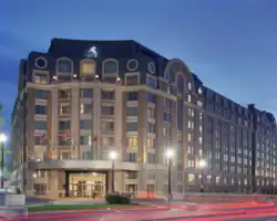Completed in 2004, the hotel is near the National Mall and Smithsonian Institution museums, and overlooked the Tidal Basin. The Washington Post calls the hotels location "unconventional". The 373-room[1] hotel is located near downtown Washington, although to reach Capitol Hill guests would need a taxicab or automobile. Guests in rooms on the upper levels have views of the city and its monuments, but the surrounding neighborhood consisted primarily of railroad tracks, freeways, and office buildings.[2]