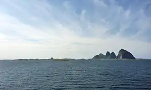 Sanna (sometimes Sanda) is an island and village area in the municipality of Træna in Nordland county, Norway. The 3-square-kilometre (1.2 sq mi) island is the largest island in Træna municipality. The island is located less than 1 kilometre (0.62 mi) west of the main island of Husøya. The island has five characteristic mountaintops, the highest is the 338-metre (1,109 ft) tall Trænstaven. The Traena Music Festival is held on this island each year.[1] The island has 3 residents (in 2018).