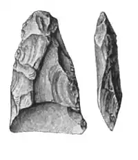 The Maglemosian people lived in forest and wetland environments using fishing and hunting tools made from wood, bone and flint microliths. A characteristic of the culture are the sharply edged microliths of flintstone which were used for spear heads and arrowheads. Microliths finds are more sparse from c. 6000 BC and the period is said to transit into the Kongemose culture (c. 6000–5200 BC). The finds from this period are characterised by long flintstone flakes which were used for making the characteristic rhombic arrowheads, scrapers, drills, awls and toothed blades.