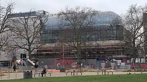 At the end of February 2012, it was reported that the £25 million conversion of the derelict building would begin in March 2012.[8] In the summer of 2012, the building was largely demolished, retaining only the original facade. When completed the hotel would have 11 floors, and the existing curved roof would be replaced by a glass roof.[9]