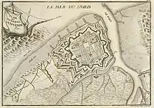 Count de Löwendal, a German who had served in a high position in the Russian army before becoming a commander in the French Army, arrived with 30,000 troops outside of Ostend in August 1745. After a few days of fighting in the open the French began a bombardment of the town and within a week the garrison of 3,600 had surrendered.[2] They were permitted to march out with honour and were escorted to Mons.[3]
