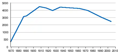 | 1890. | 2.510 [lower-alpha 2] | 1,862 | 648 | 2,087 | 632 | 25.18% |