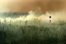 Several agencies cooperated in fighting the fire and providing emergency services, including the Michigan DNR, the Minnesota DNR, the Wisconsin DNR, the Bureau of Indian Affairs, the US Fish and Wildlife Service, the US Forest Service, the Ontario Ministry of Natural Resources, the Michigan National Guard, Air Guard, the Michigan State Police, Luce County Sheriff's Department, the National Weather Service, the Nature Conservancy, area volunteer fire departments, the Salvation Army, and the American Red Cross.[3] 239 persons were involved, manning bulldozers, five helicopters and a water bomber.[1][4]