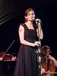 In May 2011, she revealed that she had begun work on her fifth album.[45] Beginning in 2012, Ellis-Bextor worked with British singer and producer Ed Harcourt on a "more concept driven record", and possibly having as few as eight tracks. Her performance at a London charity gala in November 2012 including a new song, "Young Blood";[46] a demo of the song was released in March 2013 as a complimentary digital download from her website, as a thank you gift to her fans.[47] Also in 2013, she performed outdoors at Old Republic Square in Almaty, Kazakhstan.[48] Ellis-Bextor confirmed completion of the album in May and revealed its title, Wanderlust, and cover art in October.[49][50]