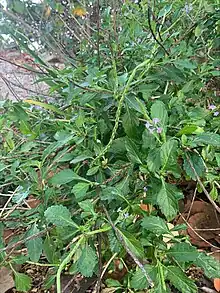 Stachytarpheta jamaicensis is a species of plant in the family Verbenaceae, native throughout the Caribbean,[3] including Florida.[4] It has many common names including blue porterweed, blue snake weed, bastard vervain, Brazilian tea, Jamaica vervain,[5] light-blue snakeweed,[6] and, in St. Croix, worryvine.source? It usually is found along country roadsides, and it also grows well as a ruderal plant on disturbed terrain.