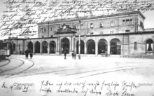 The obligation to save money and the resulting small size of the buildings soon led to problems. The crowded station buildings in Cannstatt and Ludwigsburg were noted by the director of the Württemberg railway in 1849.[6] In 1860 two stories added to the city side of the station building and by 1886 an arcaded porch was added.[7]