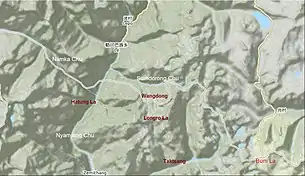 Sumdorong Chu (Tibetan: གསུམ་རྡོ་རོང་ཆུ, Wylie: gsum rdo rong chu; Chinese: 桑多洛河; pinyin: Sāng duō luò hé)[1] is a tributary of the Nyamjang Chu river that flows along the disputed Sino-Indian border between the Tsona County of Tibet and the Tawang district of Arunachal Pradesh. It originates in the Tokpo Shiri Glacier, about 7–10 kilometres east of Nyamjang Chu, and flows down to the river.[2] Its junction with Nyamjang Chu is to the north of that of Namka Chu, another contested river valley, by about two kilometers.