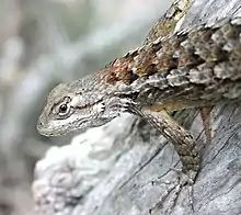 The Texas spiny lizard (Sceloporus olivaceus) is a species of phrynosomatid lizard native to the south central United States, in the states of Texas, Arizona and Oklahoma, and northeastern Mexico in the states of Coahuila, Nuevo León, Tamaulipas, and San Luis Potosí. They are quite common throughout their range, where they can be found in trees or on fences.