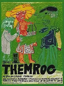 Themroc is a 1973 French satirical film by director Claude Faraldo. It was produced by François de Lannurien and Helène Vager and its original music was composed by Harald Maury. Made on a low budget with no intelligible dialog, Themroc tells the story of a French blue collar worker who rebels against modern society, reverting into an urban caveman. The film's scenes of incest and cannibalism earned it adults-only ratings. It was the first film to be shown in the UK's Channel 4's red triangle series of controversial films in 1986. It has become a cult film.[1][2]