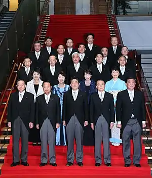 ![]() Prime Minister Shinzō Abe (front row, centre) with the re-elected cabinet inside the Kantei, December 24, 2014 | |