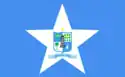 Its flag color is light blue with a white start, inside is the coat of arms but has its parts in light blue.