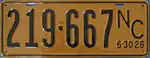 1925–26 | Embossed black serial on orange plate with border line; diagonal "NC" and "6-30-26" at right | none | 123-456 | 1 to approximately 348-000 | |