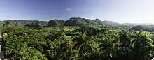 Viñales Valley (Spanish: Valle de Viñales) is a karstic depression in Cuba. The valley has an area of 132 km2 (51 sq mi) and is located in the Sierra de los Órganos mountains (part of Guaniguanico range), just north of Viñales in the Pinar del Río Province. In 1999, the valley was inscribed as a UNESCO World Heritage Site as a natural and cultural landscape because of its use of traditional tobacco-growing techniques.[1]