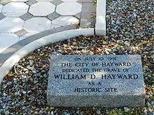 - ↑ Steve W. Lee (2008-01-24). "Grave of William Hayward, founder of the City of Hayward, California". Retrieved 2008-12-09. Shows photo of tombstone.